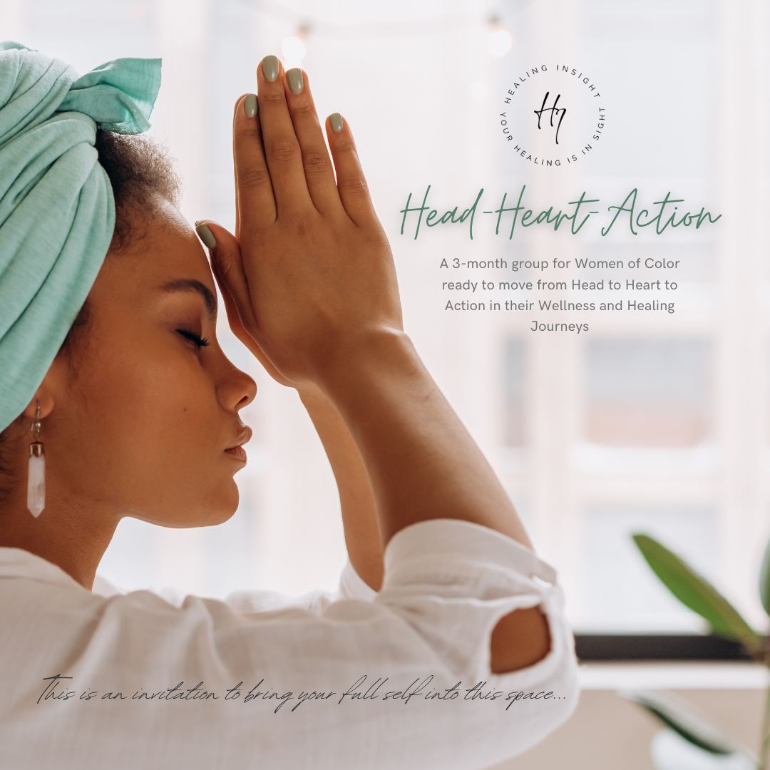 Head-Heart-Action is a 3-month group coaching and wellness container for Black Women and Women of Color designed to help you move into heart-aligned action in your wellness goals.